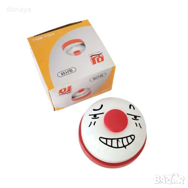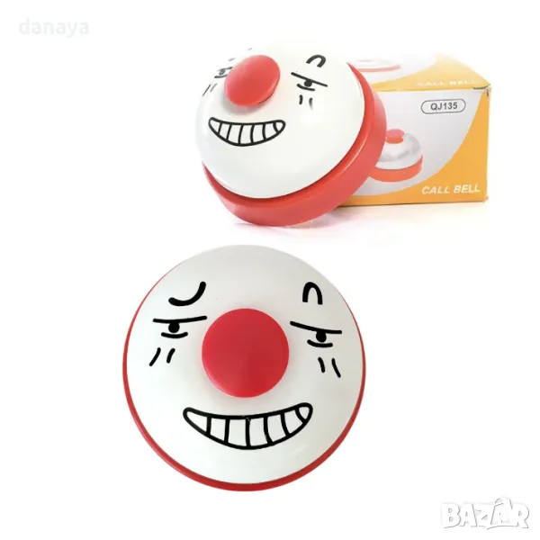 Класически настолен звънец с оригинален дизайн – усмихнато лице на палячо, който внася настроение навсякъде. Подходящ за рецепции, кухни, ресторанти, барове или за забавление у дома. Издава ясен и отчетлив звън при натискане.