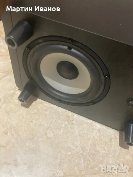 На субъфера липсва командния модул. При транспортирането модула изчезна заедно със сателитките. До последно работещ. Затова е на тази цена. Ако някой може да си го преработи за явтомобил или има модула. Здрав високоговорител 6", корпус от ПДЧ и черен дървесен фурнирканалите също работят.. Запазен вид