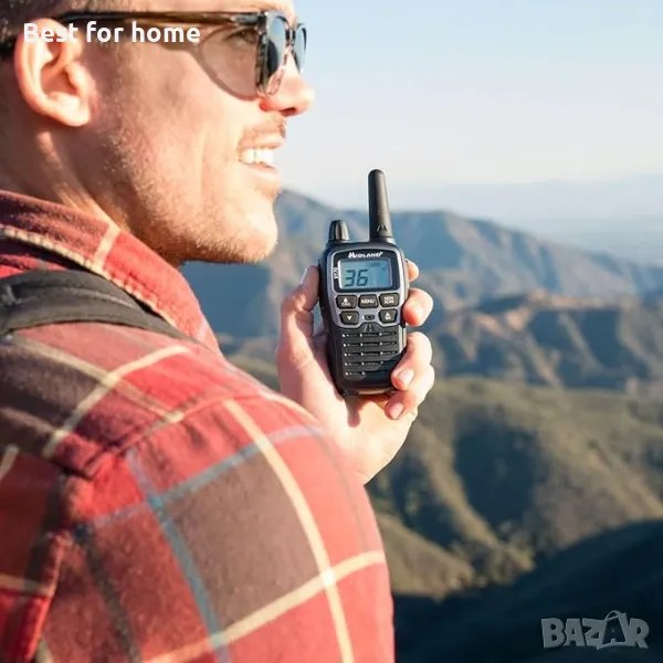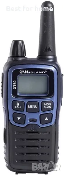 Със станциите Midland XT60 можете да комуникирате до 10 километра на открито. Разстоянието на комуникацията може да варира в зависимост от района, в който се намирате, и препятствията между двете устройства.