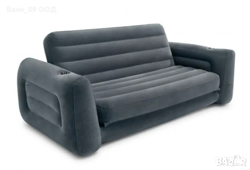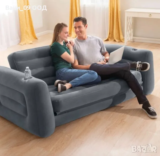 Перфектен за тези, които имат гости, но нямат достатъчно място в дома си. Надуваемият диван Pull-Out е практичен и универсален и лесно се превръща от диван в двойно легло. Разполага с клапан 2 в 1 с много широки отвори за бързо надуване и изпускане на въздуха, и две поставки за чаши за максимално отпускане. Повърхността ви осигурява допълнителен комфорт, а диванът се сгъва компактно за съхранение.
