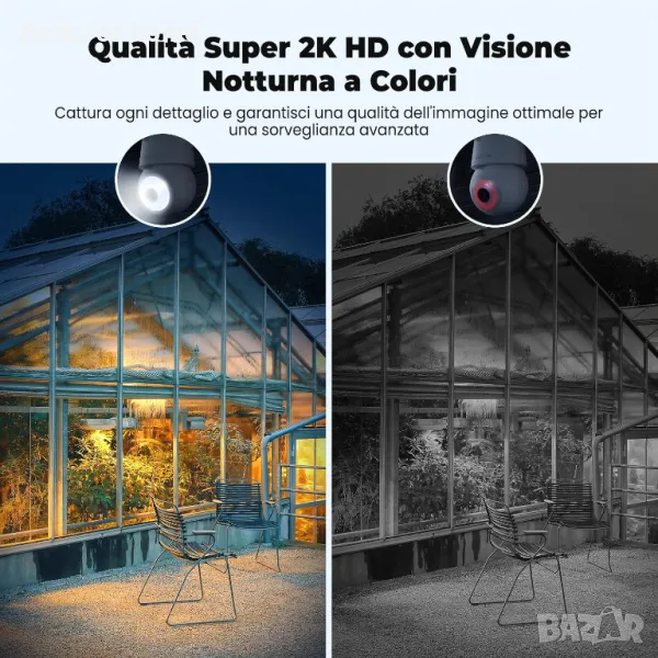 【Крушка с WiFi камера2K резолюция и цветно нощно виждане】Външната камера за наблюдение предлага до 2K резолюция и HD черно-бели и цветни режими за нощно виждане. Задайте различни режими чрез приложението, за да получите повече подробности за изображението. Нощното виждане достига 10M, можете да получите ясни изображения, независимо дали е ден или нощ.