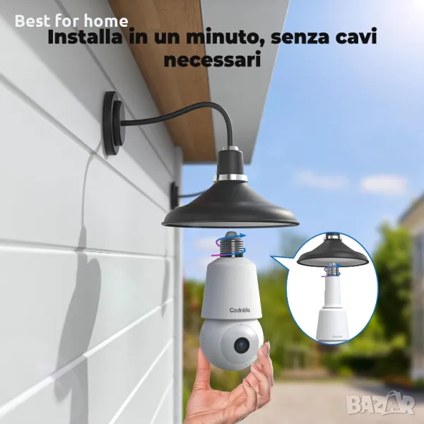 【Лесен за инсталиране и 2.4GHz Wi-Fi връзка】Външната Wi-Fi камера с крушка е съвместима със стандартни фасунги E27 (100-240V). Инсталацията се извършва чрез просто завинтване на камерата в фасунга E27. След това просто изтеглете приложението "CloudEdge" на телефона си, следвайте инструкциите в приложението, за да свържете камерата към 2.4GHz WiFi и да започнете (не е съвместима с 5GHz WiFi).