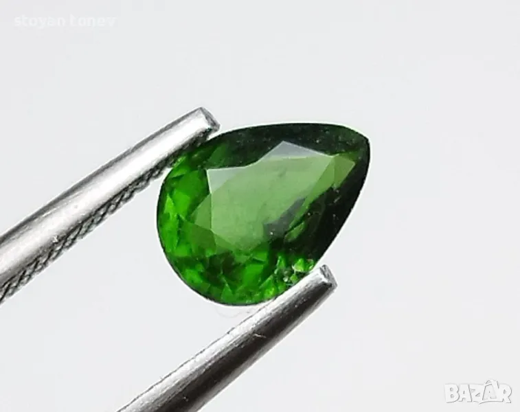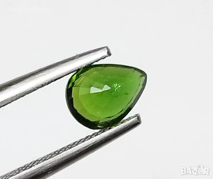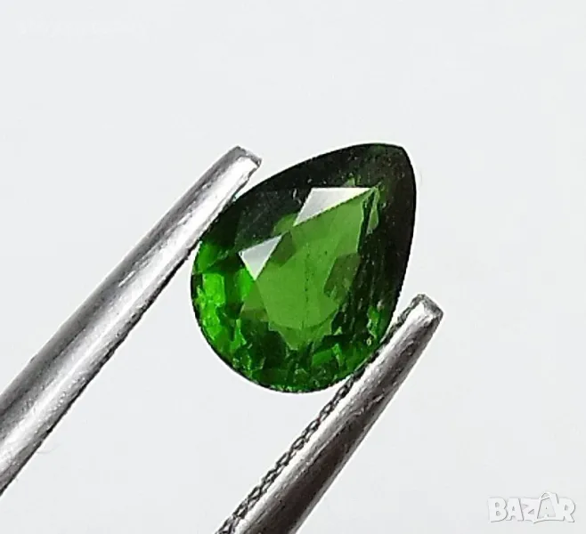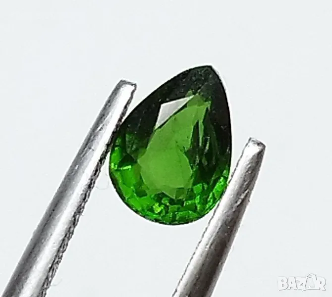 Естествен Цаворит гранат с тегло 0.58кт. и произход Танзания. Чистота VS с минимални видими включения. Цвета е наситено зелен. Форма круша с размери: 6 x 5 x 3 mm.