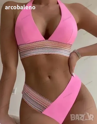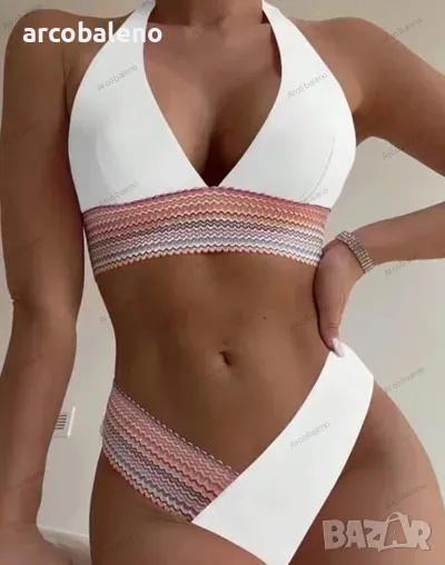 Новият бански с висока талия, секси push-up, с цветни блокове и ленти, е подходящ за носене на почивка, плаж, курорт, басейн и други поводи. Той може да покаже женската непринуденост, свобода и моден стил.