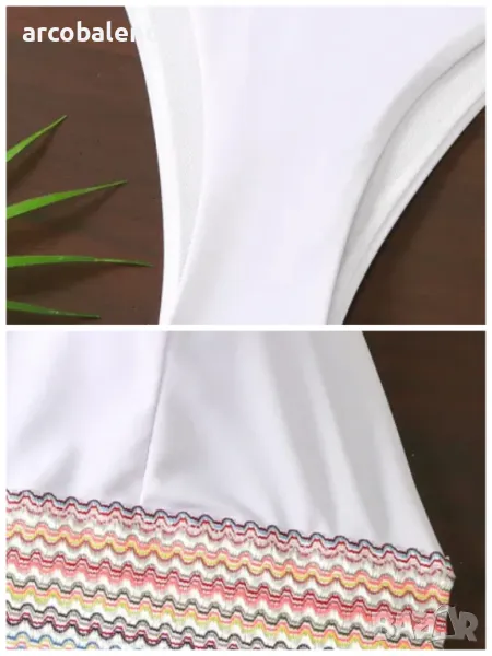 Моден дамски бански костюм с цветни блокчета и ленти, 5цвята