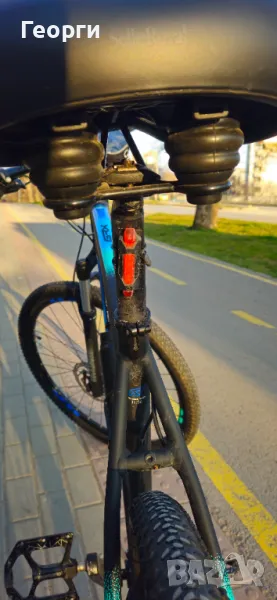 Велосипедът е с подменени педали, седалка, добавена степенка, поставка за шише, както и самото шише, предна и задна светлина, компютърче, звънец и поставка за телефон - напълно оборудван и готов за каране!