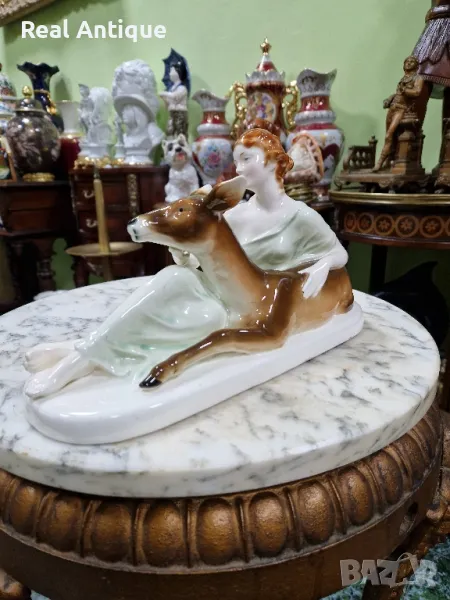 Продавам стара уникална изключително красива антикварна порцеланова фигура статуетка композиция в перфектно състояние без никакви забележки с наличните маркировки. Тежка здрава масивна. Дължина 27 см височина 17 см. Прекрасно допълнение към интериора на Вашия дом офис вила. Подходяща и за подарък. Работя с всички куриери . Отговарям бързо.