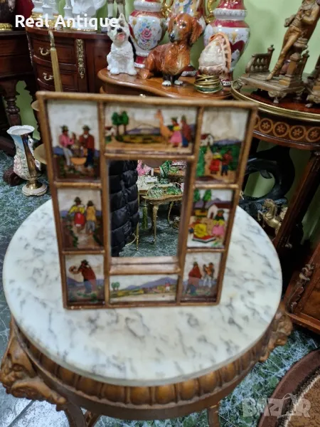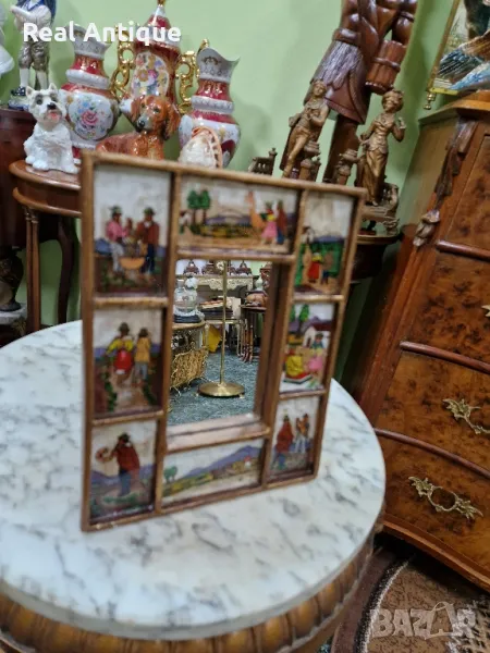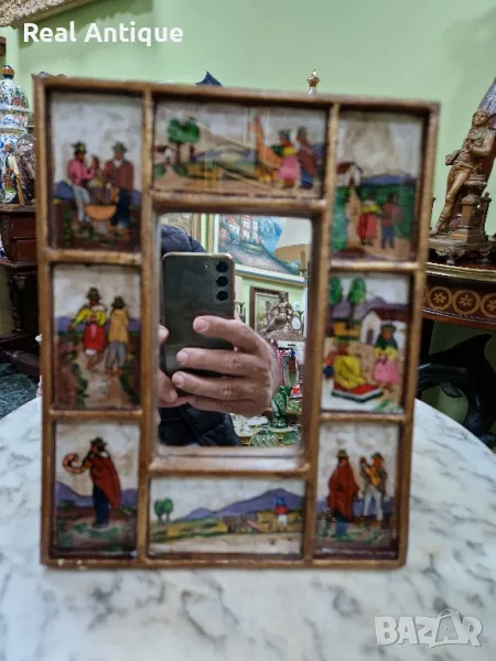 Страхотно антикварно огледало ръчно изрисувано → Обява 50154176