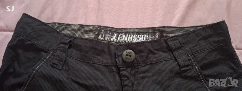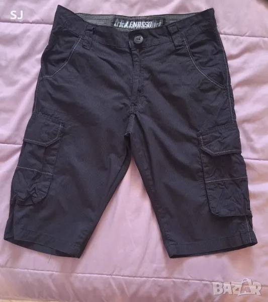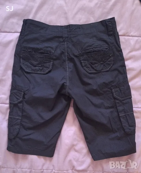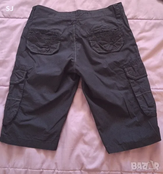 Мъжки къси летни панталони, със странични джобове, в черно с тънко бяло райе. Отлично състояние. Размер S