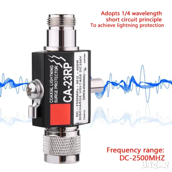 2. Единият край е свързан към антената, а другият край е свързан към трансмитера. Отстрани на разрядника има винтов пръстен за заземяване. Може да се вкара в дебела медна тел и да се притисне плътно с менгеме. След това другият край на медния проводник се свързва към мълниезащитната мрежа на върха на сградата. Контактът трябва да е достатъчен.