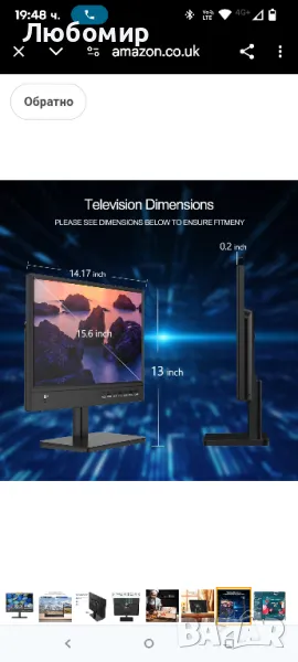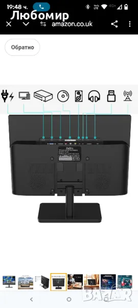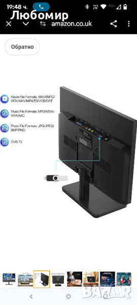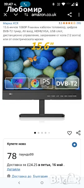 с дефект в двата края с по една черта...15.6-инчов 1080P Freeview кабелен телевизор, цифров DVB-T2 тунер, AV вход, HDMI/VGA, USB слот, дистанционно управление, захранване от кола (12 волта) или от електрическата мрежа.Цифров DVB-T2 телевизионен тунер, приема безплатни HD телевизионни станции по ефир. 15,6-инчовият IPS LED екран е с висококачествена резолюция 1920 1080, осигуряваща превъзходна яснота и богати цветове, с вградени стерео високоговорители.12-волтово зарядно за кола, захранващ адаптер, можете да играете у дома, а използването на кола е оптималният избор! чрез 12-волтов автомобилен адаптер или главен захранващ адаптер.Вашият телевизор има HDMI, VGA и USB порт. Тази функция ви позволява свободно да използвате мултимедия или подобен хардуер.Вашият телевизор има HDMI, VGA и USB порт. Тази функция ви позволява свободно да използвате мултимедия или подобен хардуер.Възпроизвеждайте вашите собствени филми, снимки и музика от USB, когато ви е удобно, както и записани програми и файлове от USB с поддръжка на: MP3, JPEG, MPEG, XVID, AVC, MP4, H.264, HEVC (H.265), FLV, MKV, TXT.ВКЛЮЧЕНО: 15,6-инчов телевизор, ДИСТАНЦИОННО УПРАВЛЕНИЕ, Захранващ адаптер, Зарядно за кола, антена и ръководство.