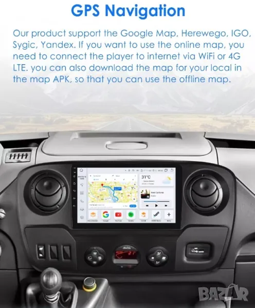 Поддържа всички навигации, съвместими с Android: IGO, WAZE, GOOGLE Maps и други