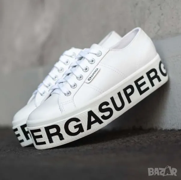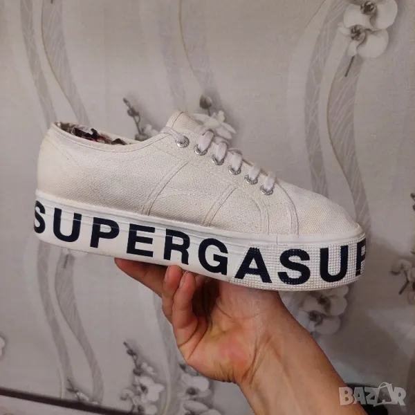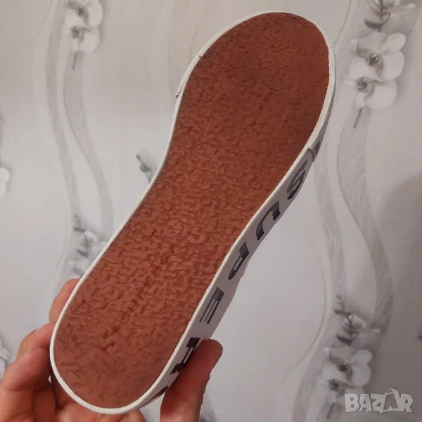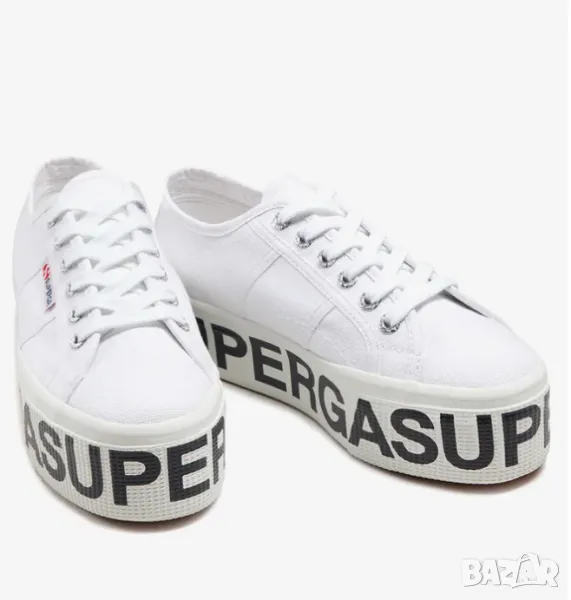 Горната част е изработена от плат. Зашеметяващи обувки от Superga.