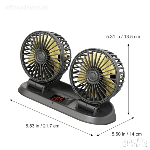 Двоен вентилатор с термометър и дистанционно управление за автомобили, джипове, бусове 12V 24V