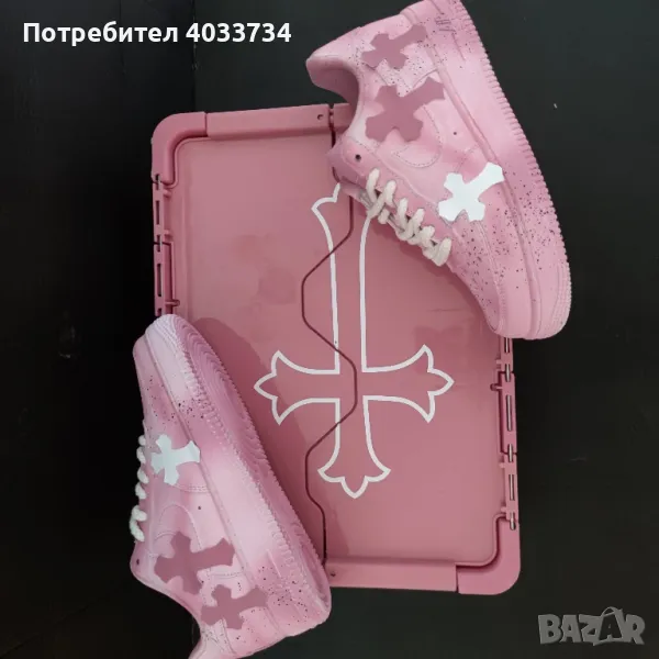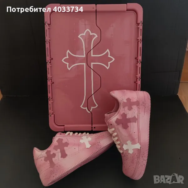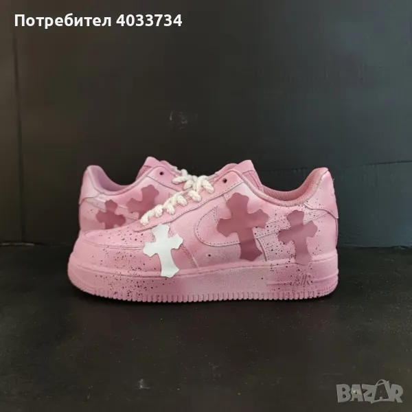 Ръчно боядисани с пръски и декорирани с розови кръстове, тези кецове комбинират уличен стил с артистичен почерк. Подходящи за хора с индивидуален стил и отношение към детайла.