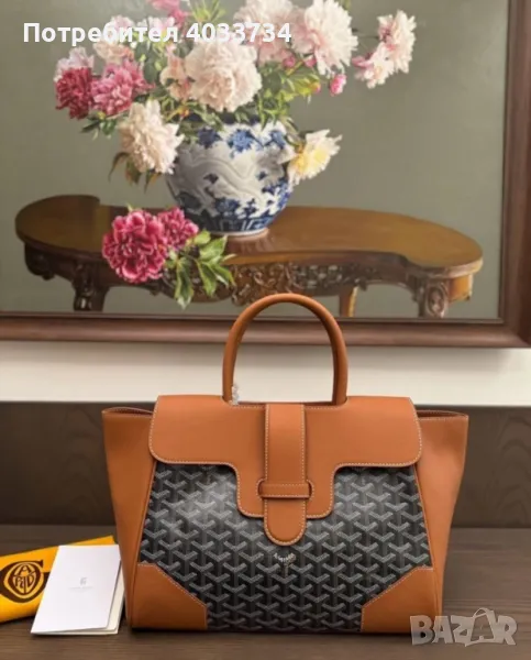 Емблематичен Goyard плат и премиум кожа в топъл коняк цвят. Тази чанта не просто допълва визията ти – тя я издига. Идеалният акцент за жената, която знае какво иска и заслужава най-доброто.