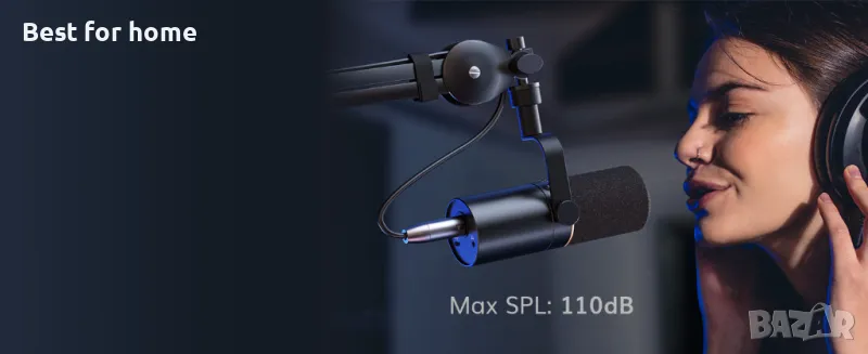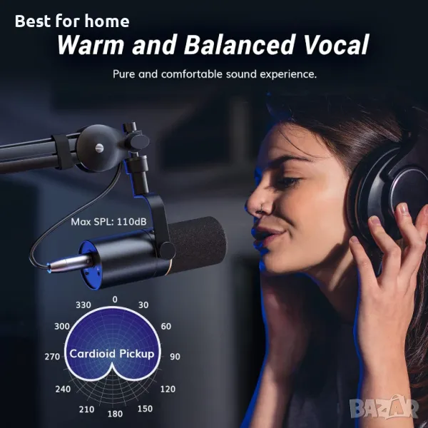 Топъл и балансиран вокал: Премиум динамичното ядро предлага отличен честотен диапазон (50Hz-14KHz) и изключително ниво на звуково налягане (Max. SPL.110dB), което позволява запис на богати, естествено звучащи вокали.