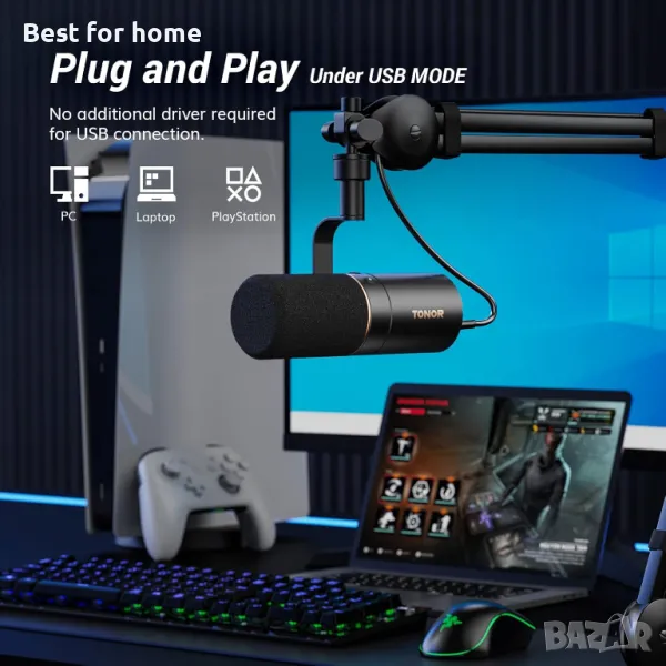 Динамичен микрофон TONOR, XLR/USB микрофон за подкасти, запис, стрийминг, игри, XLR кардиоиден