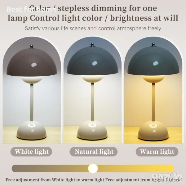 【Удобна и универсална】С 3 опции за цветна температура можете лесно да създадете перфектната атмосфера за всеки повод, независимо дали е уютна топла светлина за релаксираща вечер или хладна бяла светлина за фокусирана работа. Компактният ѝ размер и преносимият ѝ дизайн я правят лесна за преместване и поставяне, където ви е необходима.