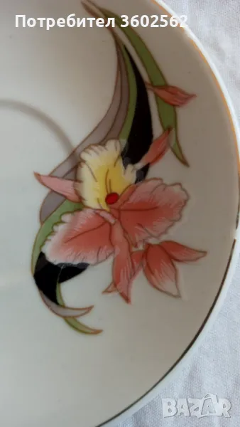 Винтидж сервиз за кафе от 6 двойни сета с много красива декорация на стилизирана орхидеа Катлея.Неизползван и е в оригиналната си опаковка .