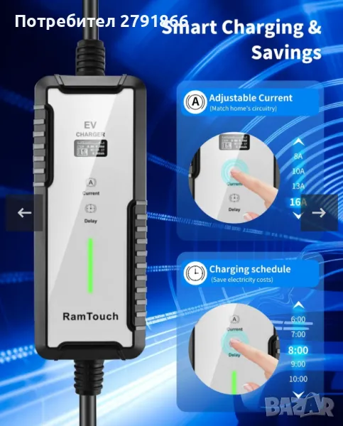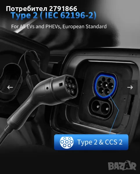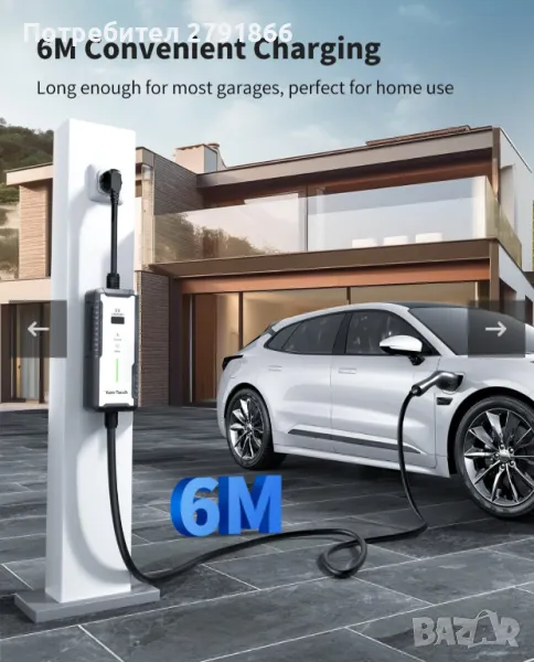 - Какво получавате: Кабел за зареждане на електрически автомобил тип 2 Schuko (3,7 kW, 1-фазен, 6 м), ръководство за потребителя, чанта за носене