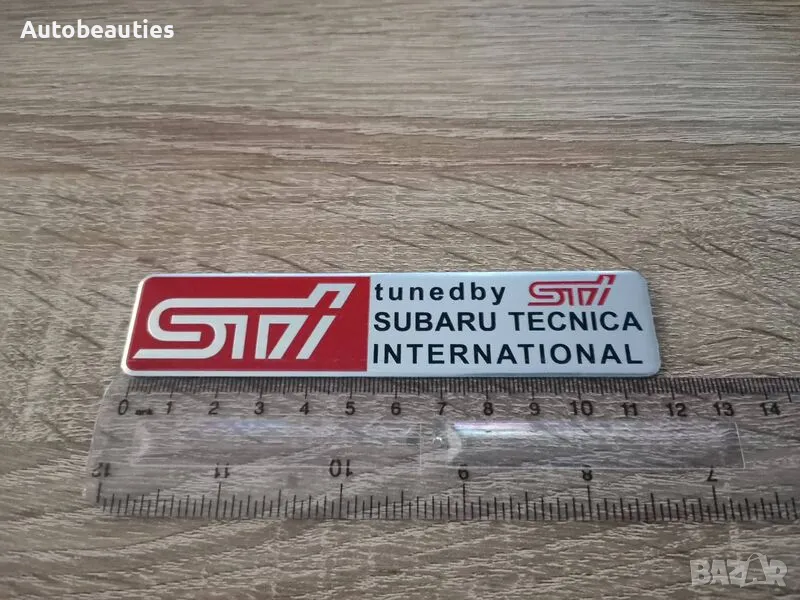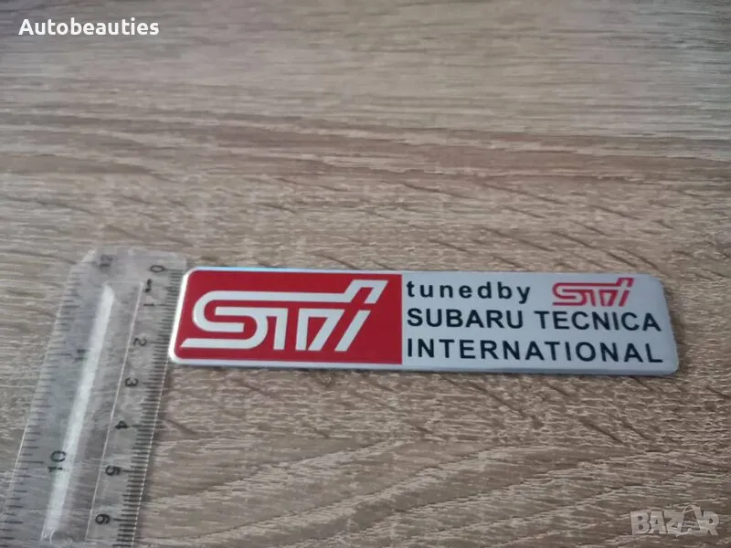 нова правоъгълна емблема Tuned by STI за всички модели на Subaru. Размерите са дадени на снимките. Цената е за 1 брой.