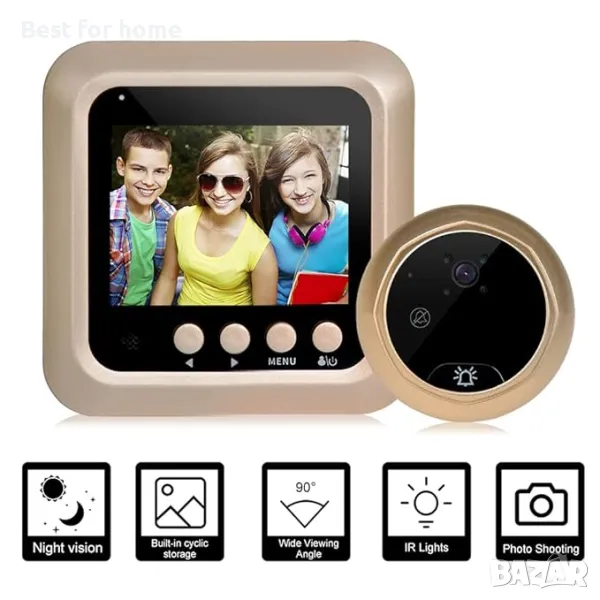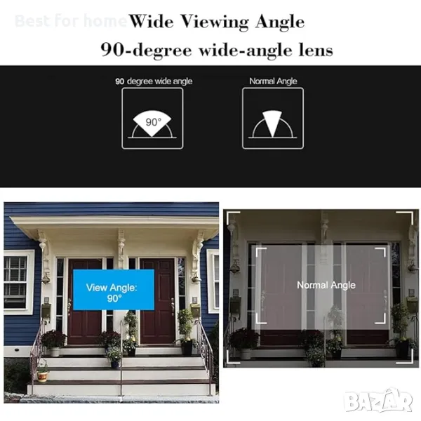 Широк ъгъл на гледане: 90-градусов широкоъгълен обектив ви позволява да виждате по-голяма картина, без да пропускате приятели, които ви посещаватл
