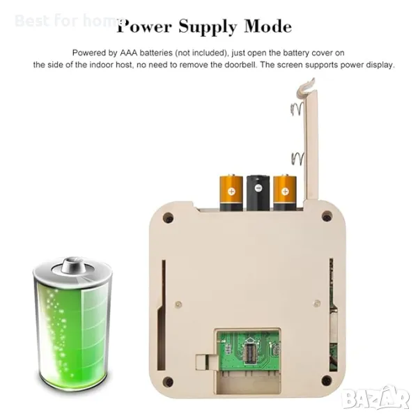 Режим на захранване: Захранва се с батерии AAA (не са включени), просто отворете капака на батериите отстрани на вътрешния хост, няма нужда да сваляте звънеца. SN поддържа дисплей за захранване