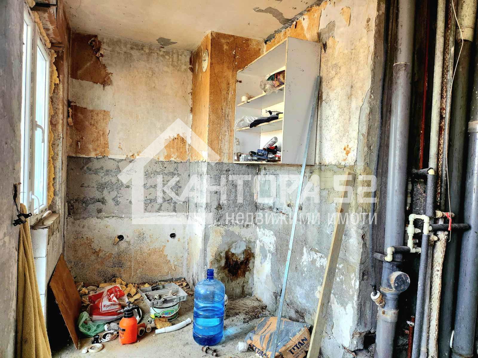 🔹 Разпределение: Коридор, баня и тоалетна, килер, Г-образна кухня-трапезария с излаз на широка панорамна тераса, две светли стаи, едната от които с излаз на широка 1.5 м тераса. Към апартамента има прилежащо избено помещение. Апартаментът е за основен ремонт, изчистен от обзавеждане. Има възможности за усвояване на терасите и преустройство на стаите.
