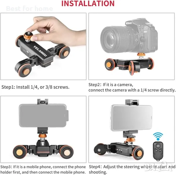 Конвертируем винт от 1/10,2 см до 3/20,3 см е подходящ за повечето държачи за фотоапарати/смартфони. Моторизиран плъзгач за камера за Canon,