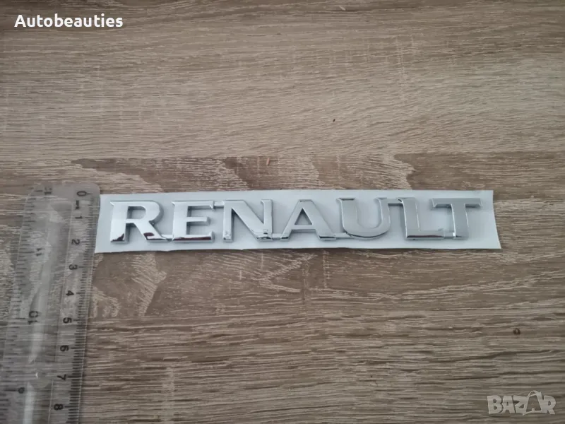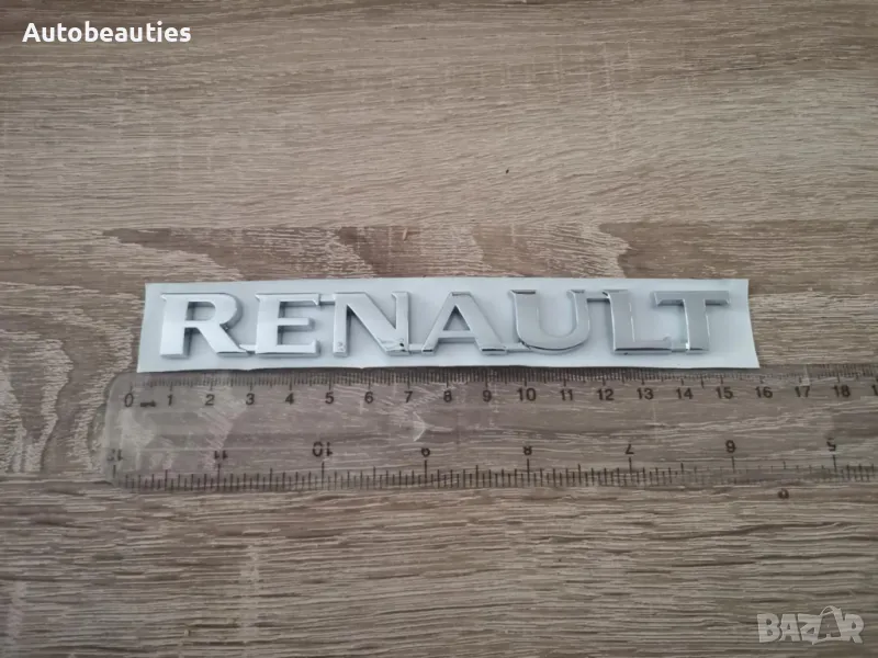 Нов сребрист надпис за всички модели на Renault в новия шрифт. Размерите са дадени на снимките.