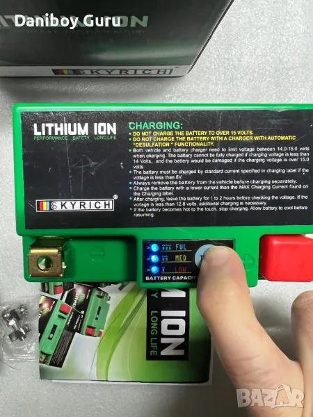 Акумулатора си има BMS за да си контролира заряда и индикатор за състоянието и степента на заряд!