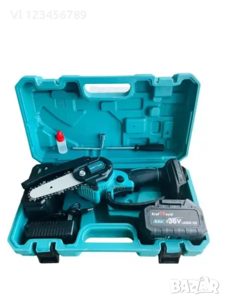 Мини акумулаторна безчеткова резачка KraftRoyal - Трион на батерии 36V с 2 вериги