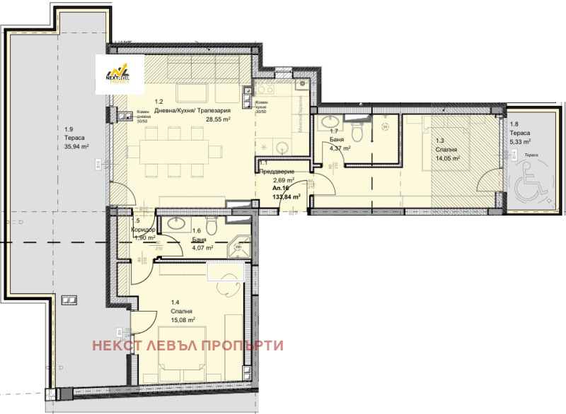 🏢 Представяме Ви тристаен с чиста площ от 133,84 кв.м. в новостроящ се модерен жилищен комплекс, разположен на изключително комуникативно място в кв. Овча Купел