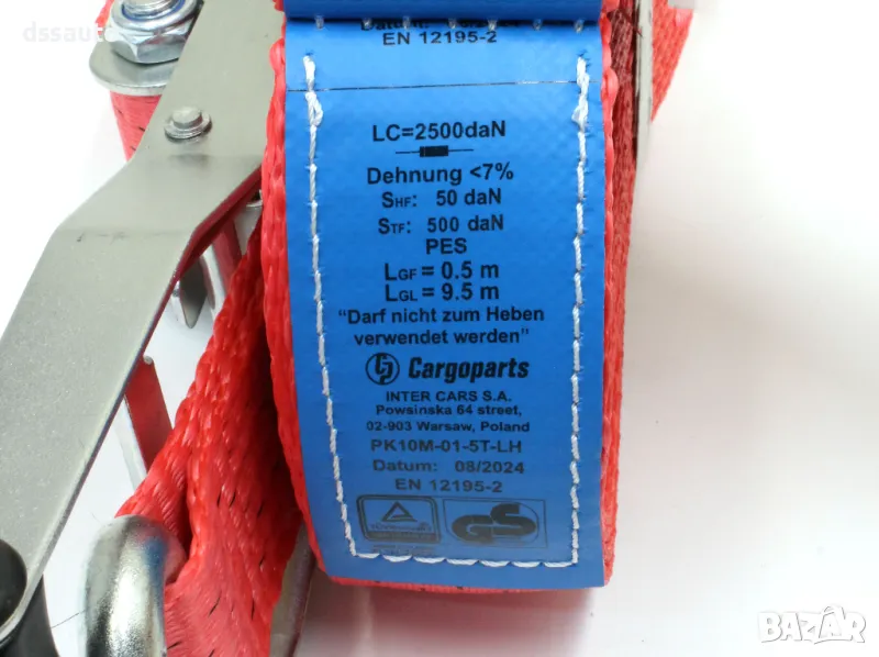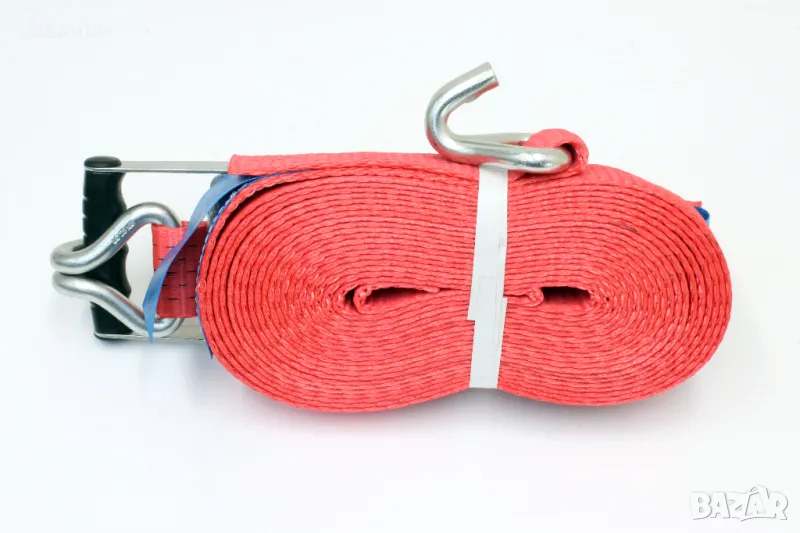 товари при превоз. С обща дължина от 10 метра (9,5 м лента + 0,5 м с тресчотка) и ширина на лентата 50 мм, този колан осигурява максимална здравина, надеждност и безопасност при работа.