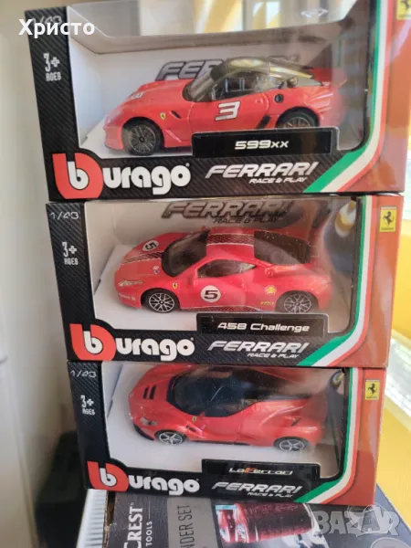 Предлагам колички Ферари, различни Модели. На Марката Бураго. Метални са! Цената е за Бройка!