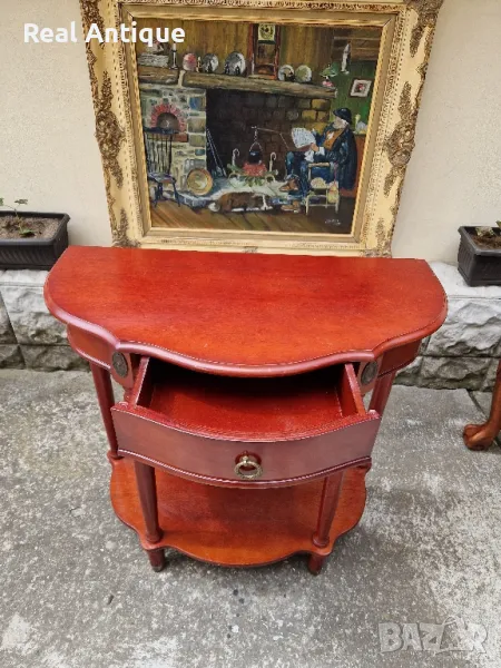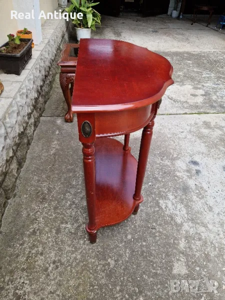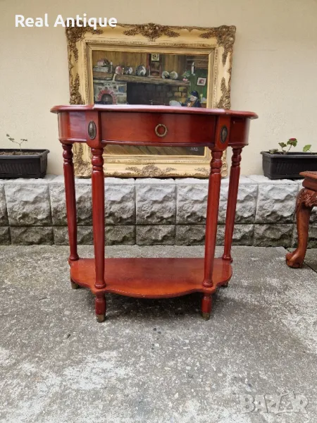Продавам прекрасна много красива антикварна английска дървена конзолна масичка на 2 нива в перфектно състояние без никакви забележки. Тежка здрава масивна. Размери дължина 776 см височина 76 см и ширина 40 см. Чудесно допълнение към интериора на Вашия дом офис вила ресторант. Подходяща и за подарък. Работя с всички куриери. Отговарям бързо .
