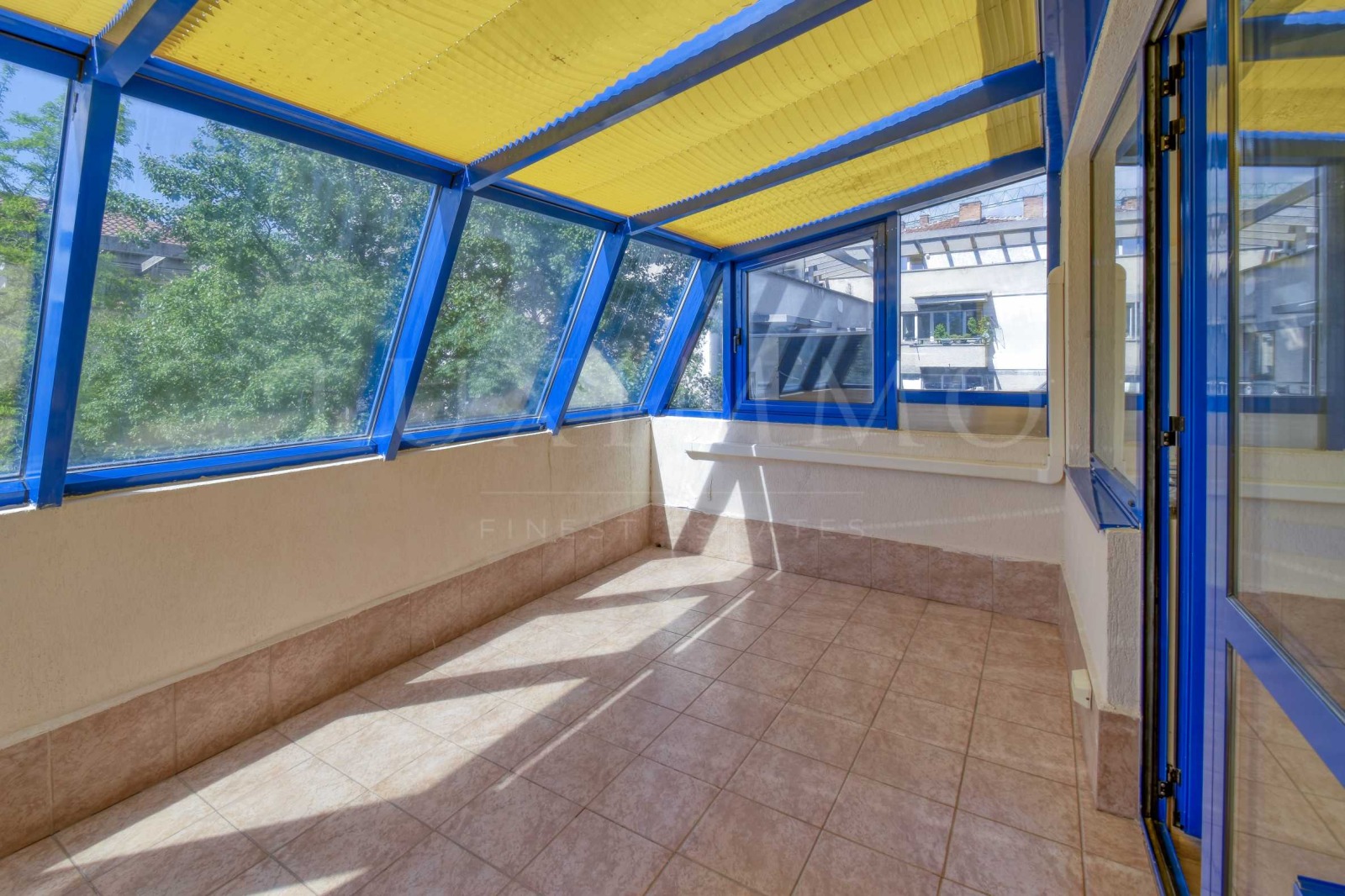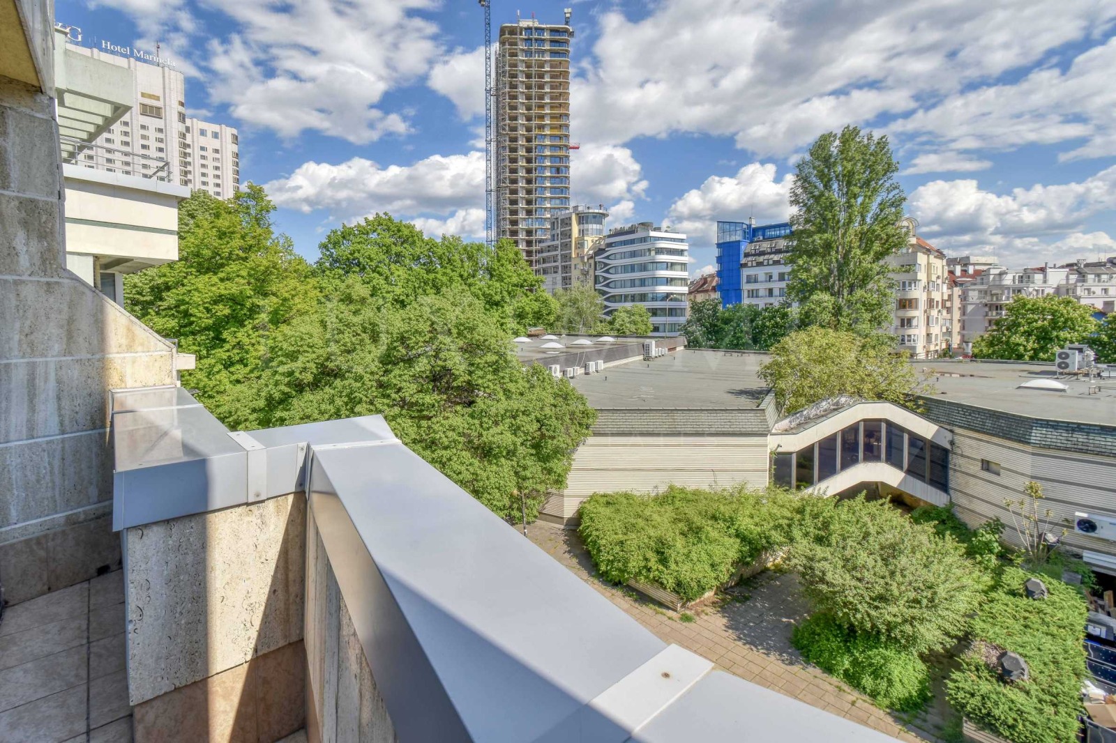 Разпределението включва три отделни кабинета, голямо отворено пространство с обособен кухненски кът, две тераси едната пригодена като зимна градина и две самостоятелни тоалетни. Пространството е с двустранно изложение юг и север което осигурява естествена светлина през целия ден. Настилката е ламинат.