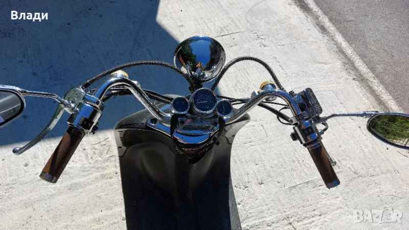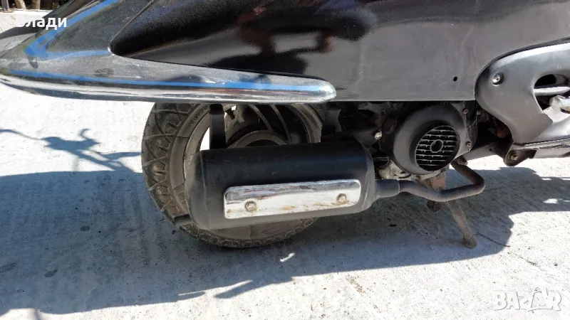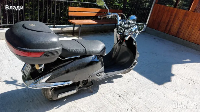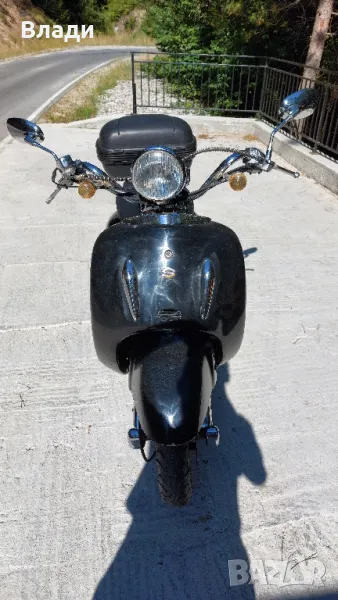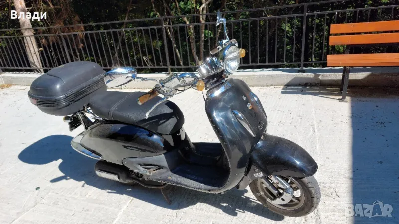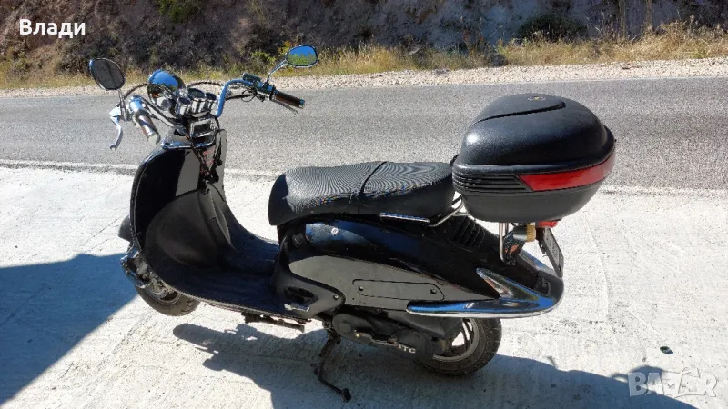 Скутерчето е в добро състояние ,върви една идея по добре от 50 кубиков което ме кара да мисля че е с кит ,продава се с куфара и свален аоблегалка,за да се монтира куфара на неино място има валиден преглед за тази година ,аларма с дистанционно запалване.