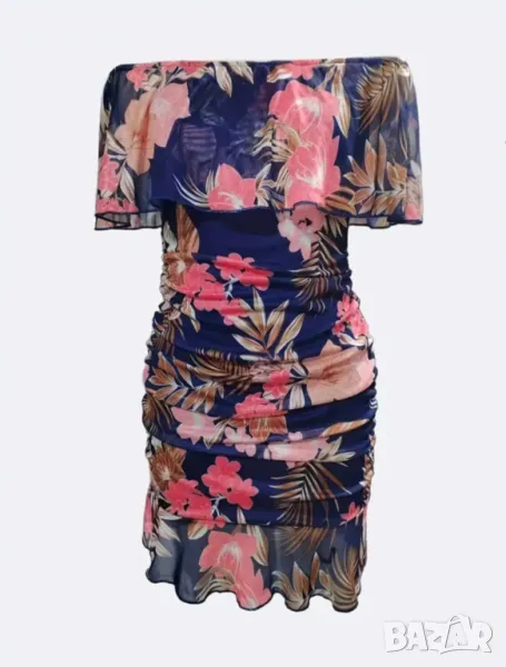 Рокля с цветя флорален принт без рамене еластична размер Л