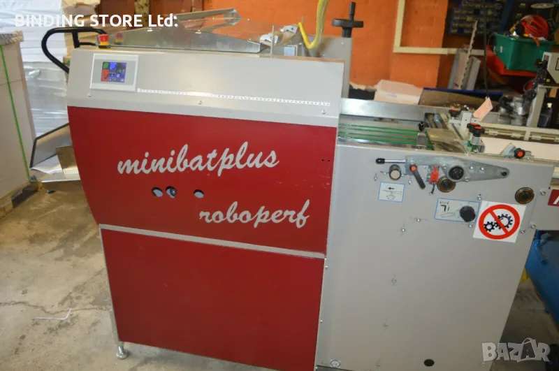 Mini Bat Plus е изключително бърза и издържлива машина за биговане. Тя е предназначена за бързо пренастройване при работа с малки тиражи, но при тежки натоварвания и висока дневна производителност. Има опция за модул за постоянна или прекъсната перфорация и биговане Roboperf, показан на илюстрацията долу вдясно, който извършва сложни задачи при висока скорост - до 3000 листа на час. Подавнето е обичайното за Petratto горно вакуумно с ултразвуков сензор за двоен лист, като тук е придружено с изравнителна маса за постигане на перфектно позициониране на листа спрямо модулите за биговане и перфорация.