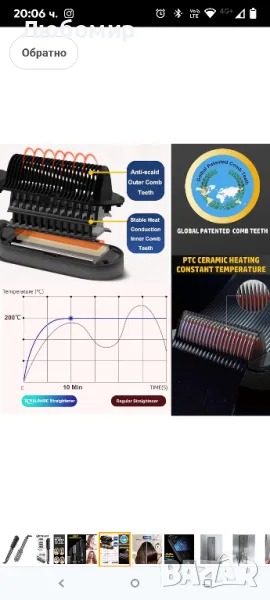 Четка за изправяне на коса с отрицателни йони, 9 температурни настройки, гребен за бързо нагряване