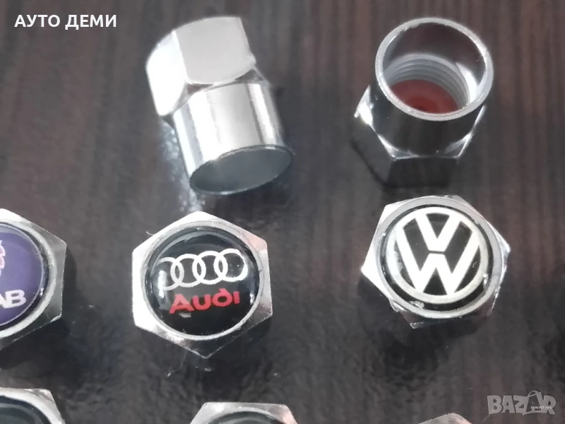 Продавам пластмасови хром капачки за вентили на гуми с емблеми на червен череп - монстър и на марки автомобили.