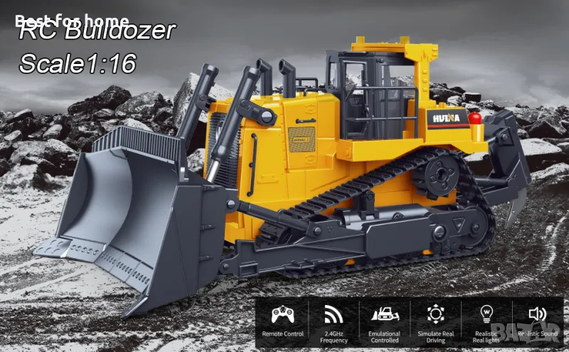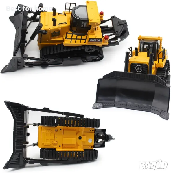 Страхотен дизайн и детайлност: Каросерия на превозното средство в мащаб 1/16, размери 14.8" x 7.7" x 6.1", LED светлини и симулационен звук на двигателя. Високо симулирана хидравлика, волан, седалка, странични огледала, ауспуси и др. Точно като истински булдозер.