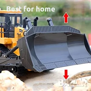 Острието на булдозера може да се разтяга нагоре и надолу, контролирано от 2.4G предавател, висококачествените материали му позволяват да работи в пясък/чакъл/почва.