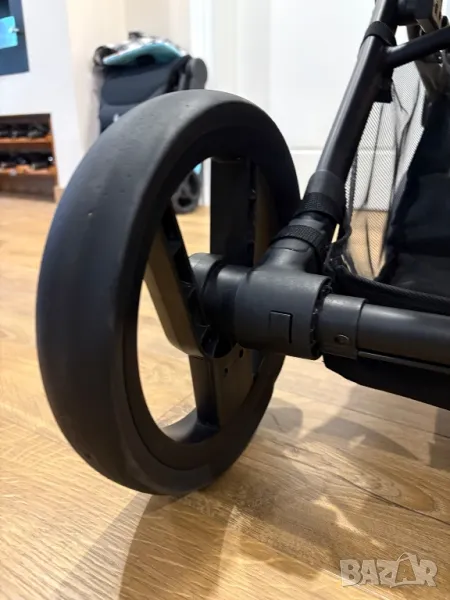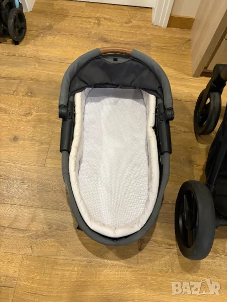 -Монтира се удобно с обикновено щракване върху адапторите прикрепени към шасито на количката и се сваля също толкова лесно.