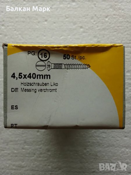 🟡Хромиран месингов винт,винтове за дърво,реставрация 4.5x40 мм–DIN95,лещовидна глава,шлиц–50бр/оп