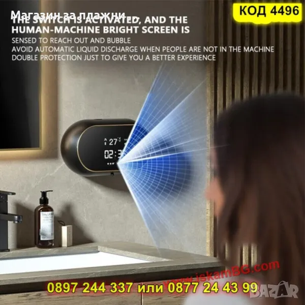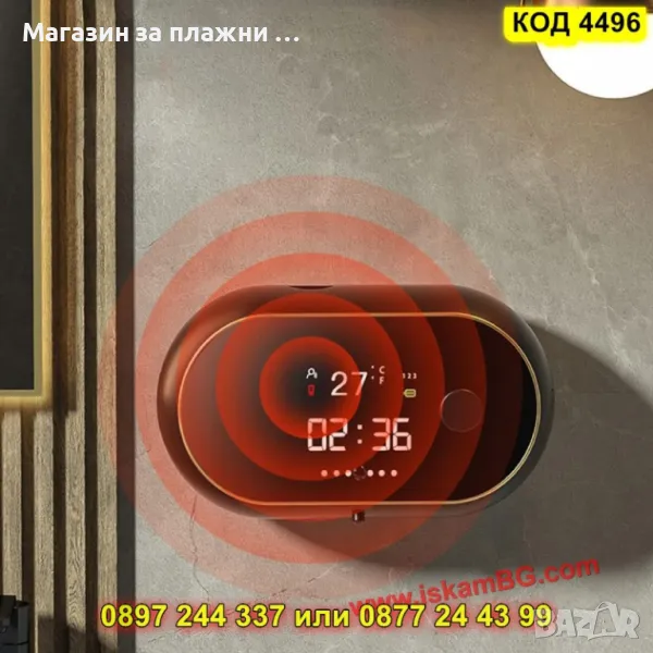 Сапунен дозатор със сензор, LED екран и таймер - ЧЕРЕН - КОД 4495 → Обява 50170526