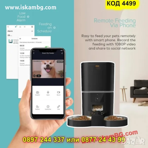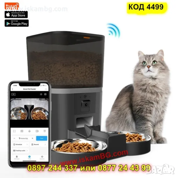 Автоматична WiFi Хранилка с Камера и Програматор – За Котки и Кучета - КОД 4499