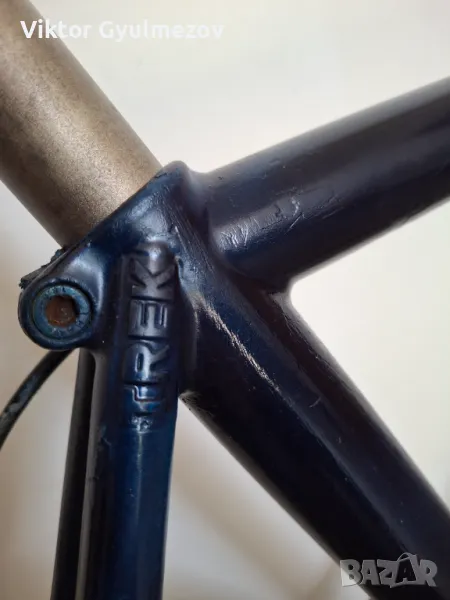 Произведен в USA , рядък модел, дори на седалкова тръба има релефен метален надпис TREK. Недостатъци, че едната команда е счупена, както се вижда от снимката,но ОСИГУРЯВАМ ДВЕ ЗДРАВИ КОМАНДИ също RSX, КОИТО СА ВКЛЮЧЕНИ В ЦЕНАТА !